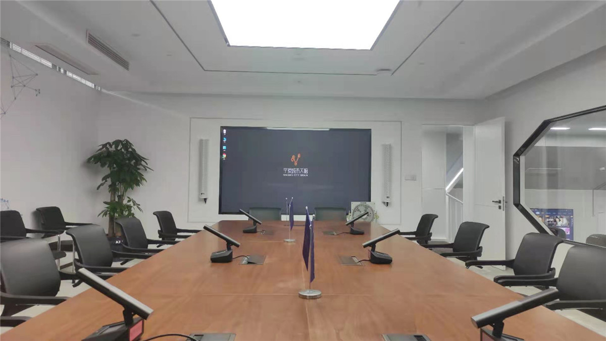 音频系统采用2只音柱音响,声音清晰度高,音频系统通过切换,既可以作为会议室单独使用,召开视频会议,又可以与大数据中心音频互联互通,作为分会场使用。