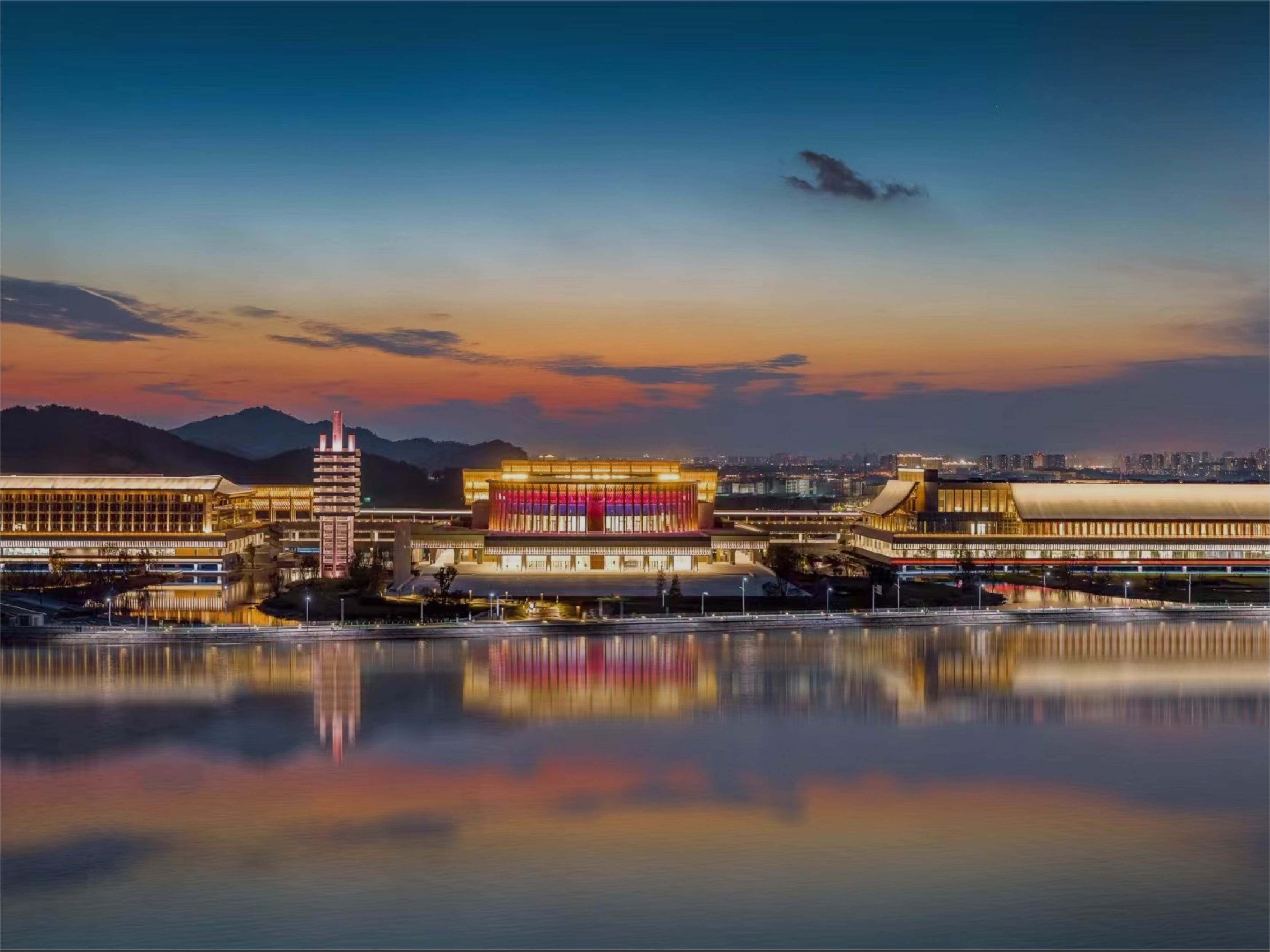 新建的宁波国际会议中心,坐落于东钱湖西岸,奕大山和东坑山之间。项目建筑整体设计通过架廊桥,达到“连青山,观绿水,望田野”的效果,将中国传统和江南韵味融入建筑之中,创造出独特的廊桥会议中心。其定位为国际领先的会议综合体,以建设国际高端、大型会议承办地为目标,力争成为宁波对接国家“一带一路”、“长三角一体化”战略的重要平台,打造“具有国际水准,富有中国江南韵味”的国际会议中心。