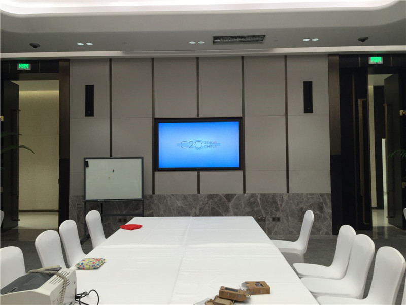 除了上述的几个大型会场,本次G20峰会还使用了杭州国际博览中心的许多小型会议厅和VIP房间,用于一些单独的领导人会面、小型的会议及论坛以及接待嘉宾。为了保证这些小型的场地依然能有绝佳的音质效果,并且不破坏装修的美感,KLING&FREITAG(K&F)的另一个经典系列扬声器--E90 MKII被巧妙的安装在墙壁里。E90MK II是一款2分频无源高性能声柱扬声器,不同于一般的声柱扬声器。它不仅能够非常精确的控制垂直方向上的声音能量分布,由于对指向性的控制显著的减少了天花和地面的反射声所以它非常适合各种难于扩声的空间。同时E90MK II也具备极高的音质水准和典雅精致的外形设计,使得它成为了高端会议室、报告厅的首选。