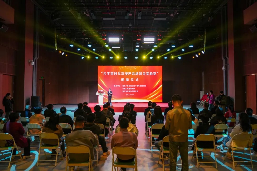 11月27日由国家广播电视总局广播电视规划院(以下简称“广电规划院”)、宁波广播电视集团(以下简称“宁波广电”)与音王电声股份有限公司(以下简称“音王”)三方强强联手、共同建立的“元宇宙时代沉浸声系统联合实验室”在宁波广播电视集团正式揭牌成立。广电规划院副院长邓向冬,宁波广电党委委员、副总裁朱红天,音王董事长兼总裁王祥贵以及相关技术人员等出席,共同见证了这一重要里程碑。